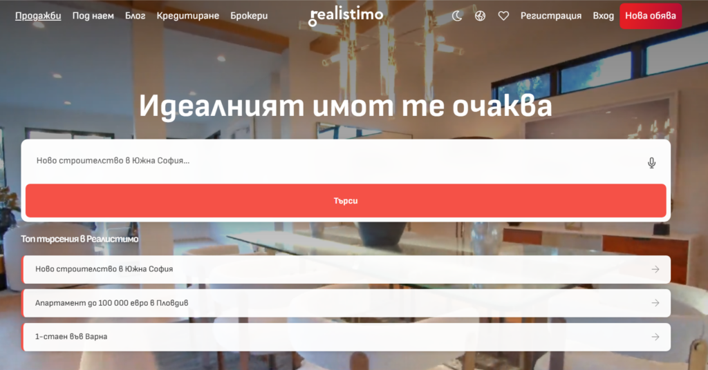 Имотният портал Реалистимо е една от първите компании, които въвеждат AI търсачка за недвижими имоти в сайта си. Тя позволява търсене чрез свободен текст или гласово продиктуване. Потребителят описва имота, който търси, а системата анализира заявката и намира най-подходящите обяви в платформата на Реалистимо. Допълнително с бърз достъп са показани и най-честите търсения в сайта.